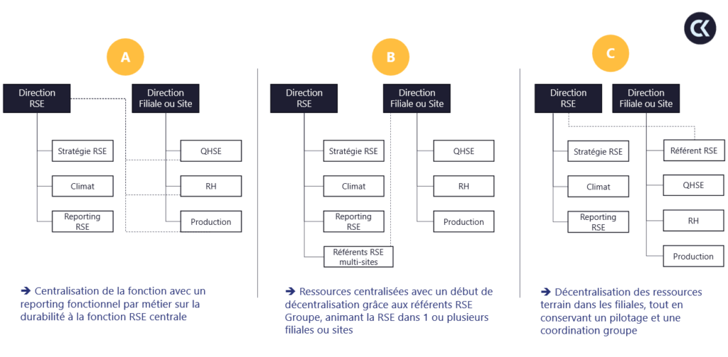 Illustration 2 – Organisation de la fonction RSE – Scénarii alternatifs